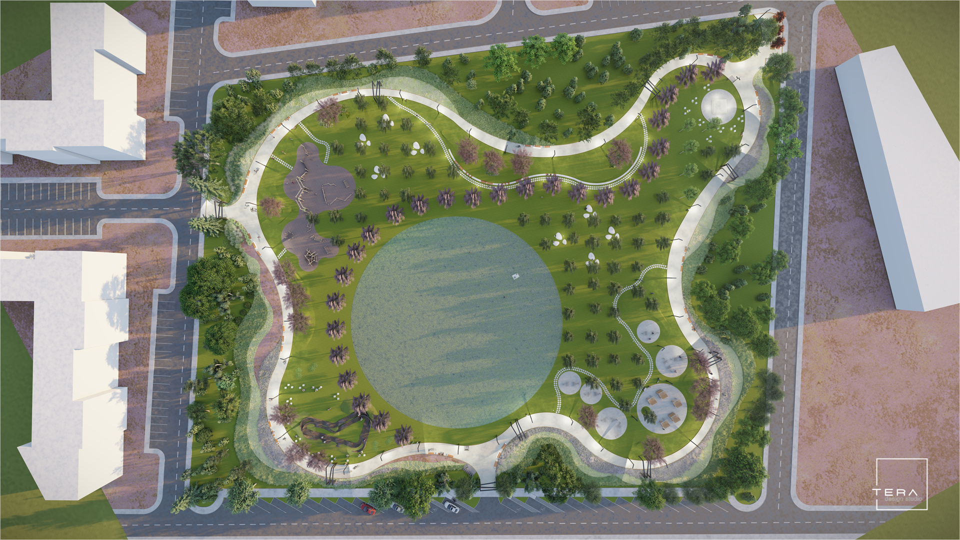 - Sustenabilitate și ecologie – parcul va integra elemente de sustenabilitate, precum sisteme de irigație eficientă, mobilier urban realizat din materiale sustenabile și soluții de economisire a energiei;